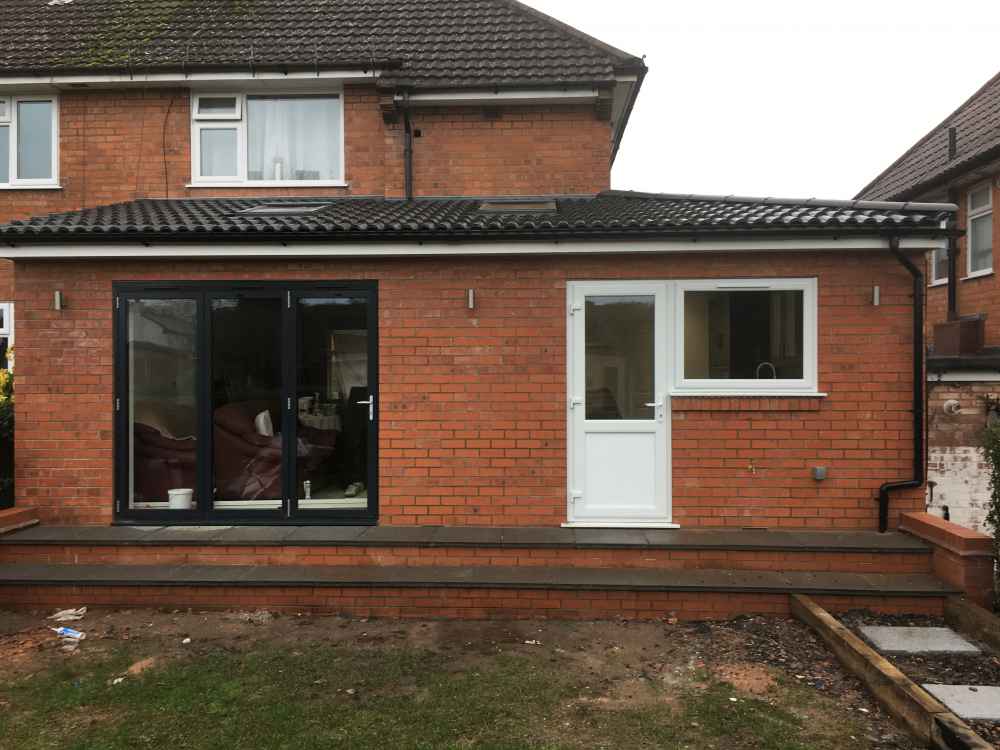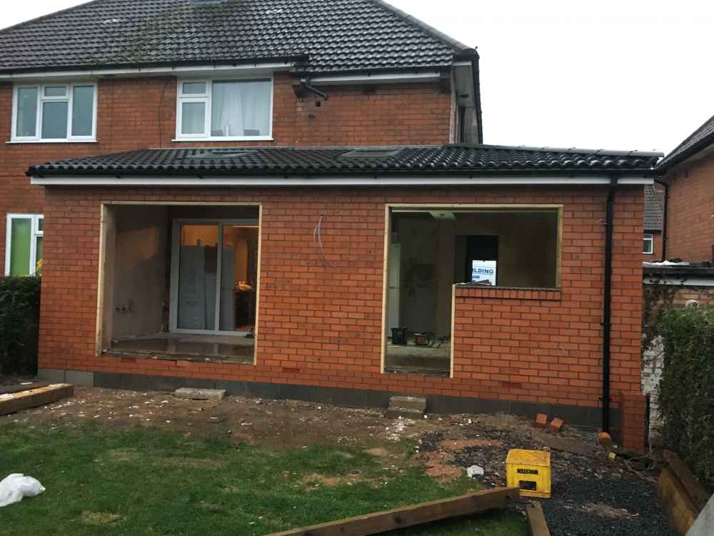 A wrap around single storey extension completed in Birmingham. Creating a large kitchen space.